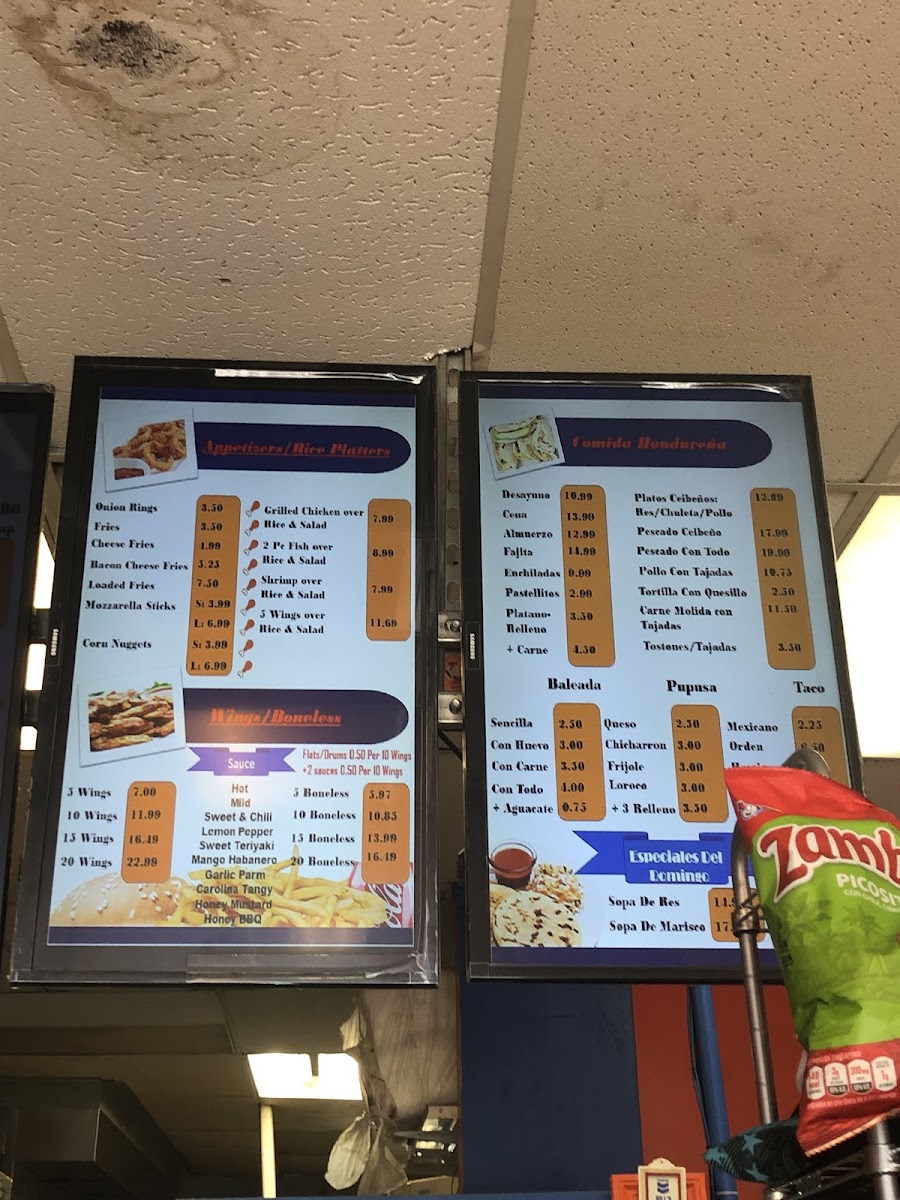 Their Tacos y Pupusas menu includes flavorful options like Tacos Mexicano and Tacos Hondureños-Flautas, alongside Pupusas and Tortilla con Quesillo. If you're craving something hearty, the Beef Soup (Sopa de Res) and Seafood Soup (Sopa de Marisco) are comforting choices.